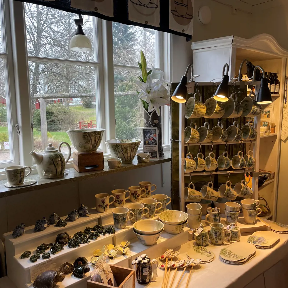 Försäljning av keramik, kläder, smycken, kroppsvård mm. Här hittar du handdrejade bruksföremål i keramik. Tomtar och mycket mer i både lergods och stengods. Dockor från Spanska Maria & Pau. Kläder för både stora och små. Afrika-hjärtat och mycket, mycket mera.