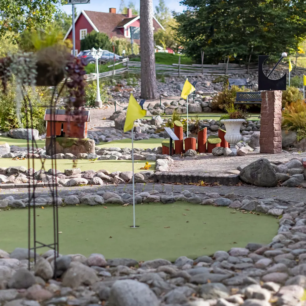 En annorlunda Äventyrsgolfbana med 14 hål, vackert belägen med lummig grönska och porlande vatten. Äventyrsgolfen passar alla åldrar, både gammal som ung.
