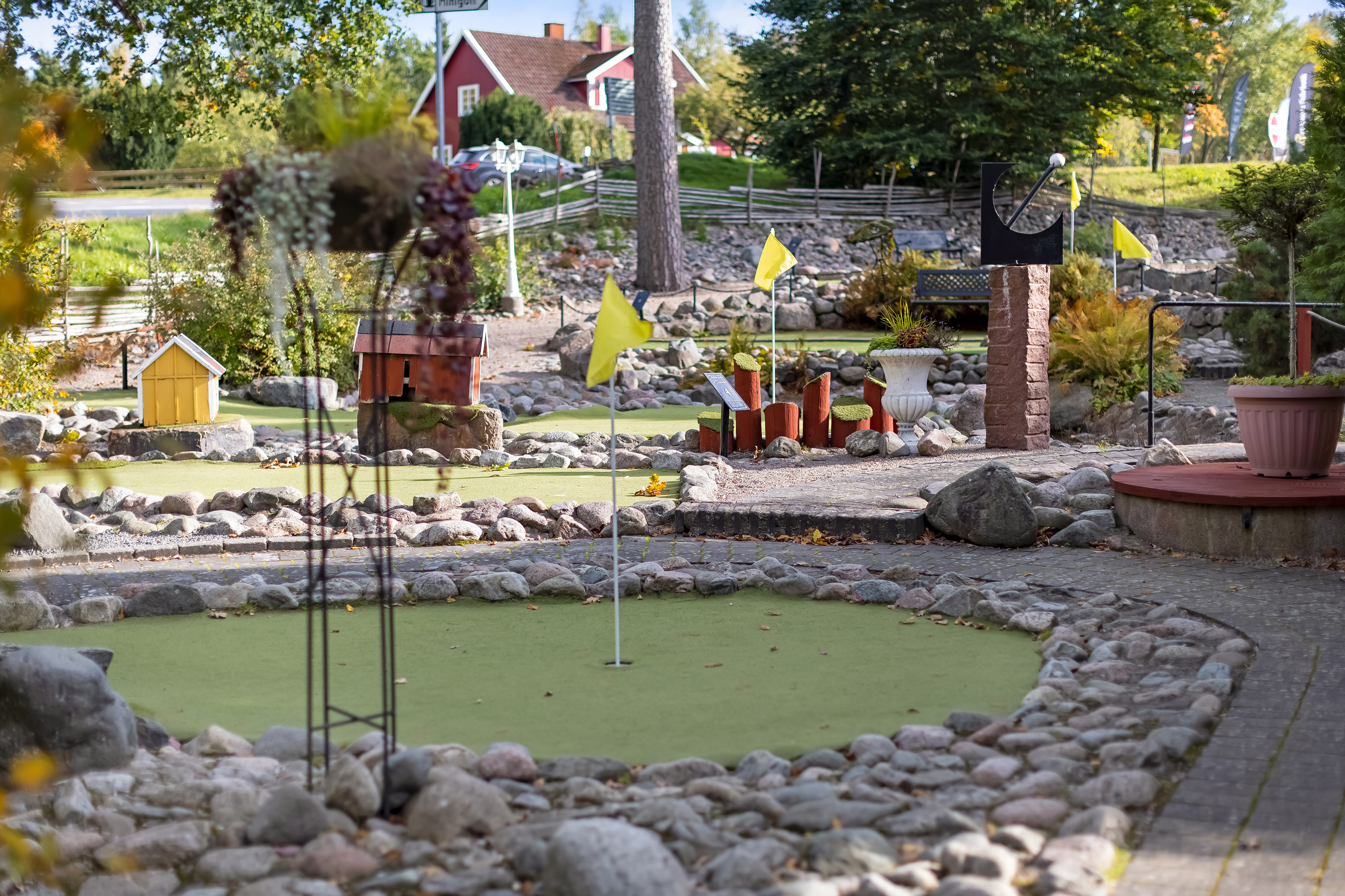 En annorlunda Äventyrsgolfbana med 14 hål, vackert belägen med lummig grönska och porlande vatten. Äventyrsgolfen passar alla åldrar, både gammal som ung.